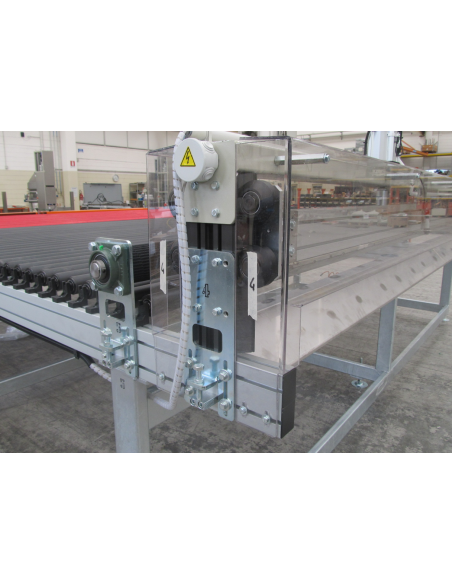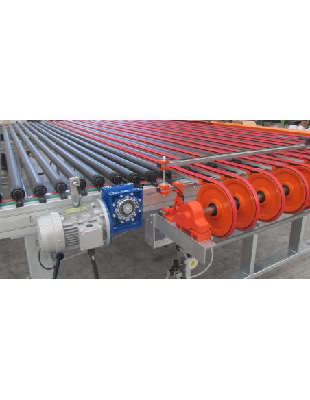 BANCALINO A RULLI MOTORIZZATO PER SOSTA PEZZI ED EVENTUALE SCARTO O REINSERIMENTO IN LINEA