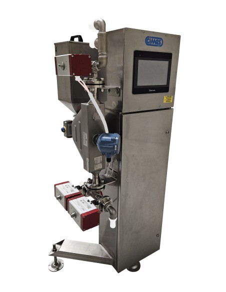 Stazione di controllo densità in automatico con visualizzatore valore ed allarme in caso di variazione parametri. Stazione composta da massico, plc e monitor, con struttura mobile per un facile posizionamento lungo tutta la linea produttiva.